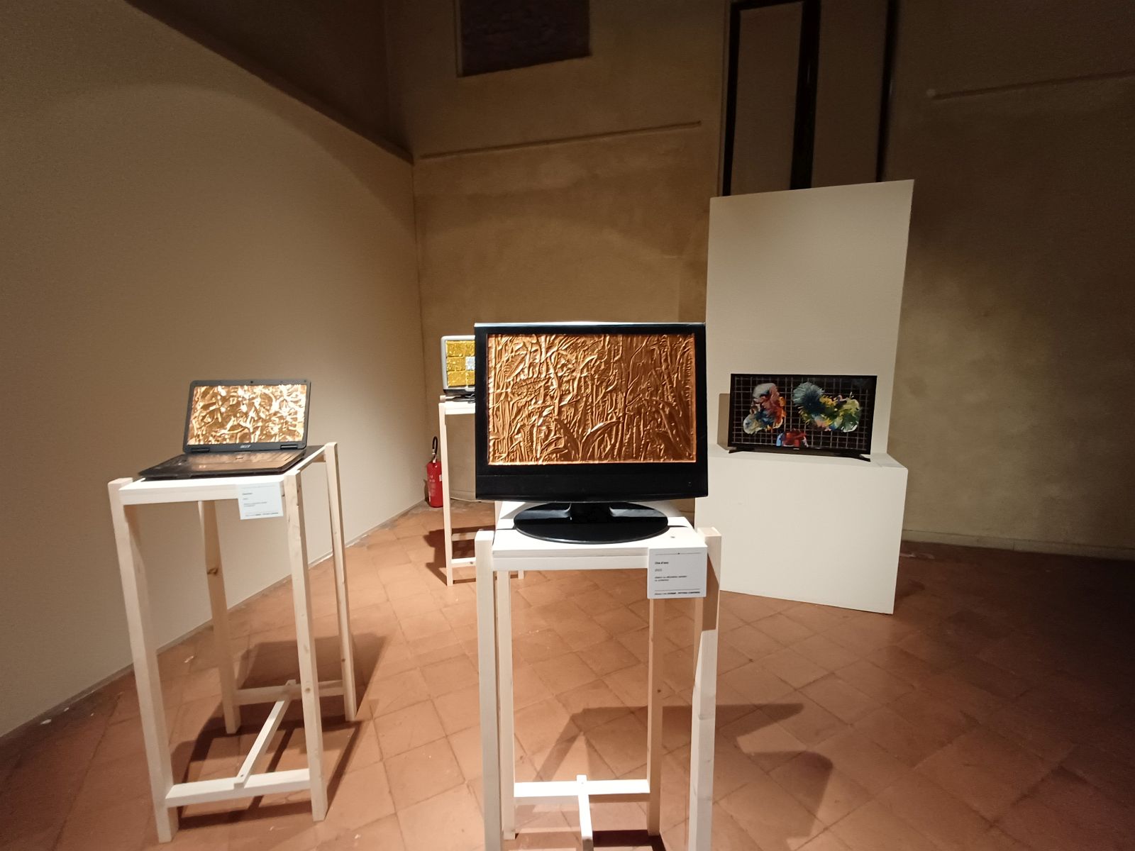 Il corpo centrale dell’offerta espositiva è composto dalla produzione pittorica recente dell’artista realizzata su superfici provenienti dallo scarti elettronici (quali: monitor, tablet, televisori, dispositivi vari) che, attraverso il gesto salvifico e creativo del pittore, ritornano in altra forma, nobilitati, ad essere presidio di immagine e superfici perfettamente vocate per la costruzione dell’opera pittorica, anche in rapporto al messaggio ambientale che il riciclo estetico comunica.